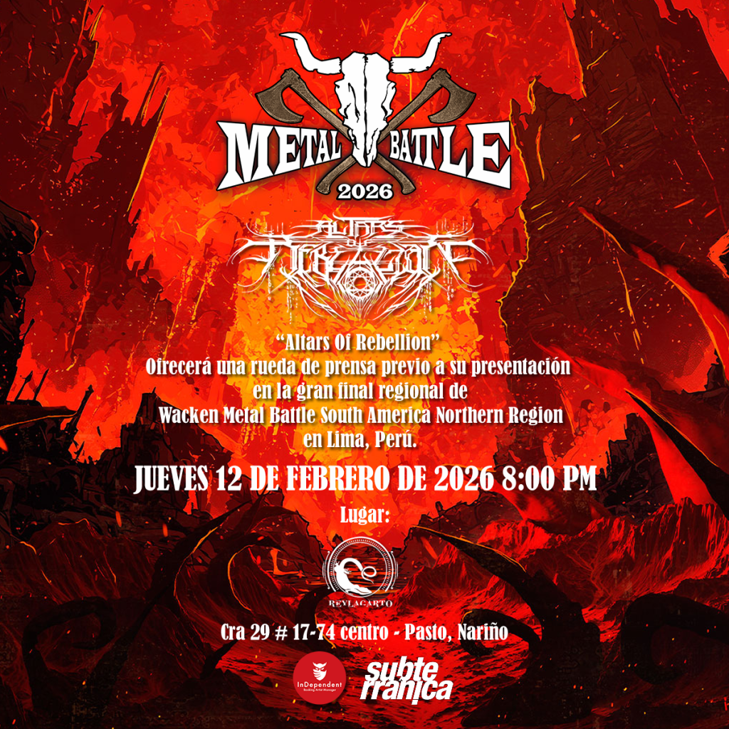El Metal colombiano vuelve a demostrar que su fuerza no está concentrada en una sola ciudad ni en una sola escena. Pasto y Medellín se preparan para despedir a dos de sus representantes más sólidos, Altars Of Rebellion y Athemesis, quienes viajarán a Lima para disputar la final regional del Wacken Metal Battle South America Northern Region, un escenario decisivo que abre la puerta al Wacken Open Air en Alemania, el festival de metal más importante del planeta.