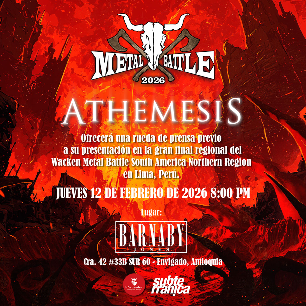 Ese mismo día, en Medellín, la banda Athemesis realizará su propio evento de prensa y encuentro con el público en Barnaby Jones, en Envigado. La agrupación antioqueña llega a la final regional como ganadora absoluta de la final colombiana, un logro que confirma el peso de la escena metalera de la ciudad y su capacidad de exportar propuestas al circuito internacional.