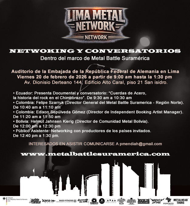 Por primera vez en Perú llega Lima Metal Network dentro del marco de la gran final regional de Wacken Metal Battle, un espacio creado para encontrarnos, aprender y fortalecer la escena del Rock y el Metal latinoamericano desde el trabajo conjunto y el intercambio de experiencias.